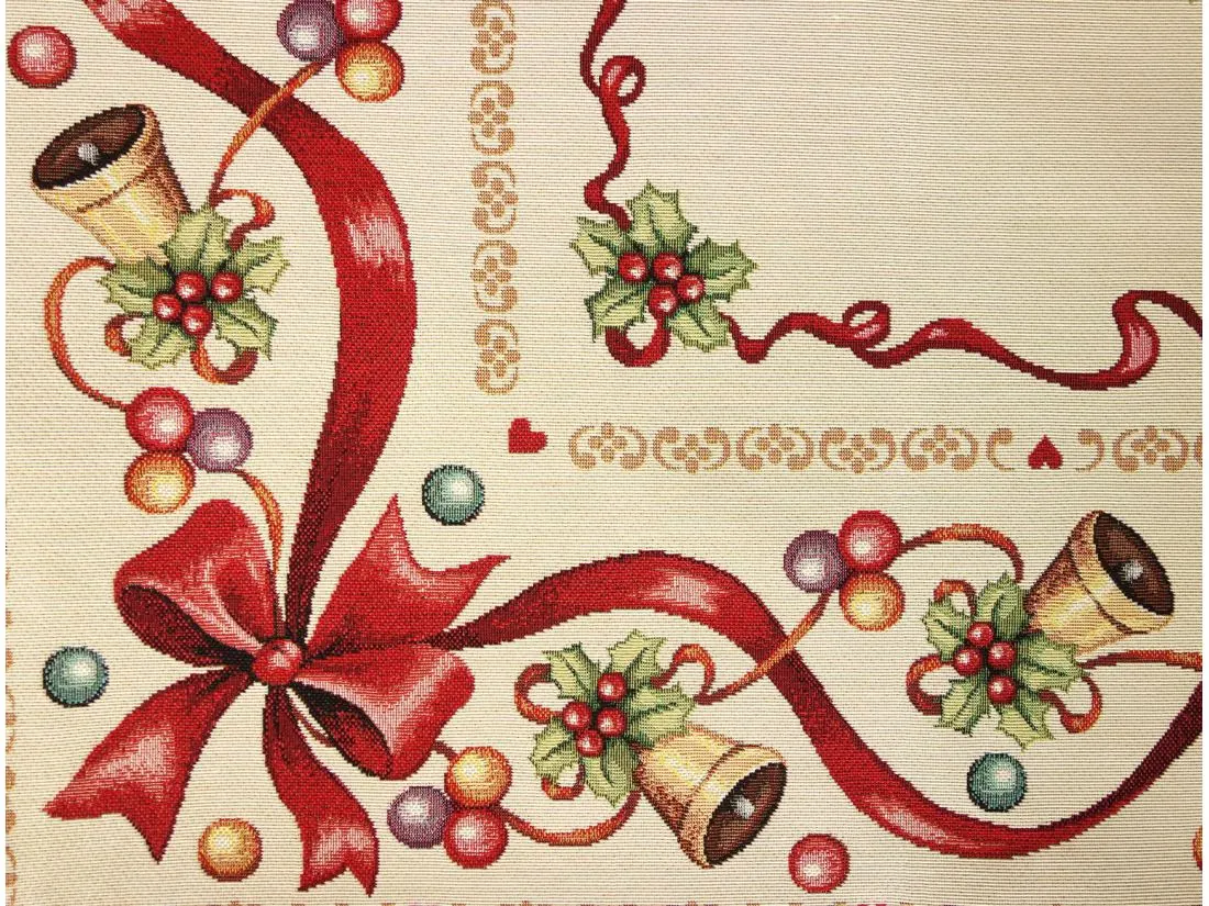 Obrus Gobelinowy Świąteczny Boże Narodzenie to wyjątkowy dodatek, który nada magicznego uroku każdemu wnętrzu w okresie świątecznym. Wykonany z hiszpańskiej tkaniny o składzie 25% bawełna, 70% poliester i 5% poliakryl, ta serweta charakteryzuje się wysoką jakością i trwałością. Tkanina jest tkana żakardowo, co nadaje jej wyjątkową fakturę i wzornictwo.Niezwykłe wzory użyte na tym obrusie nawiązują do tradycji gobelinów, które kiedyś ozdabiały ściany w domach. Teraz możesz cieszyć się tymi pięknymi motywami na swoim stole lub komodzie. Obrus Gobelinowy Świąteczny Boże Narodzenie jest idealny do umieszczenia w salonie lub kuchni, gdzie jego obecność odmieni całe wnętrze i stworzy magiczną atmosferę.Tkanina jest gruba , co sprawia, że jest praktyczna i łatwa w utrzymaniu. Różnorodność wzorów na bieżnikach gobelinowych zaspokoi gust każdego, kto pragnie wprowadzić do swojego domu niepowtarzalny, magiczny, sielski klimat. To doskonałe rozwiązanie, aby odmienić wnętrze na czas świąt, dodając mu wyjątkowego charakteru.