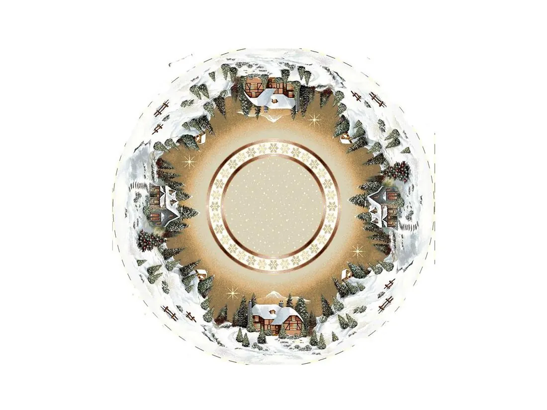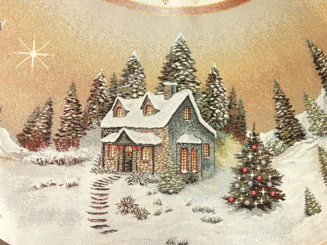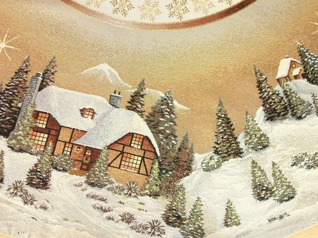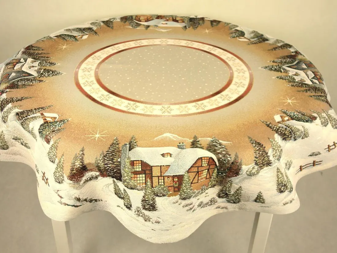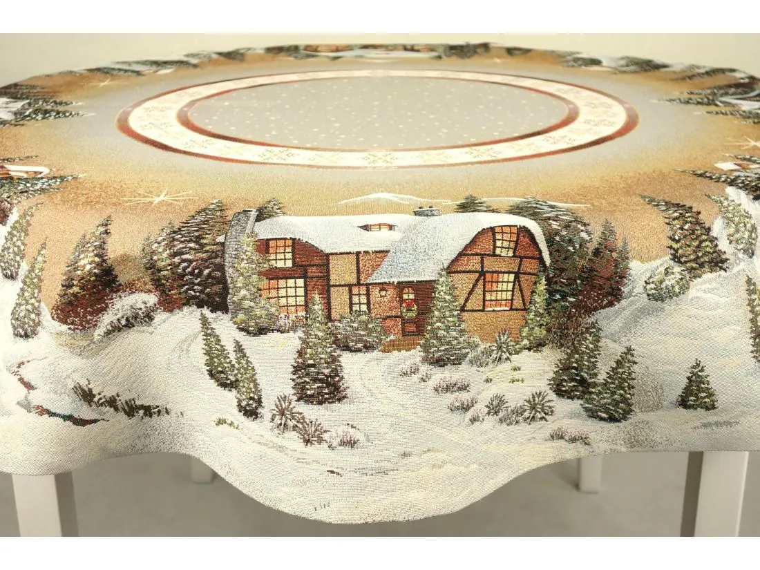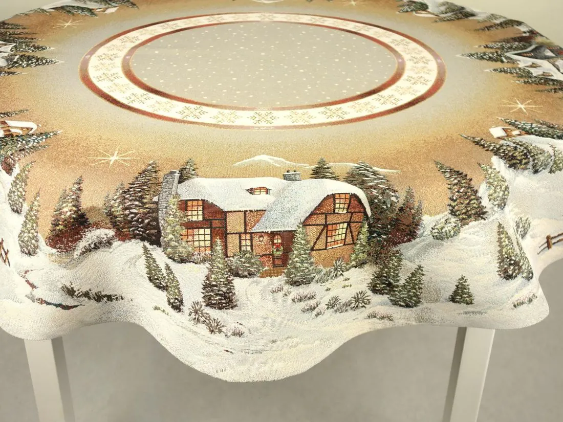 Obrus gobelinowy świąteczny śr. 140 cm beżowa świąteczna zima nr sw 228 SlodkieSny okrągły