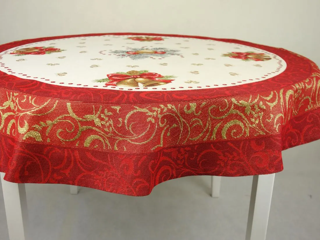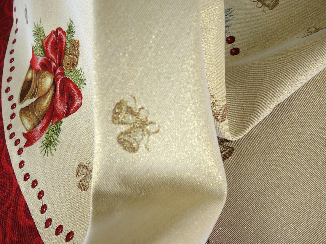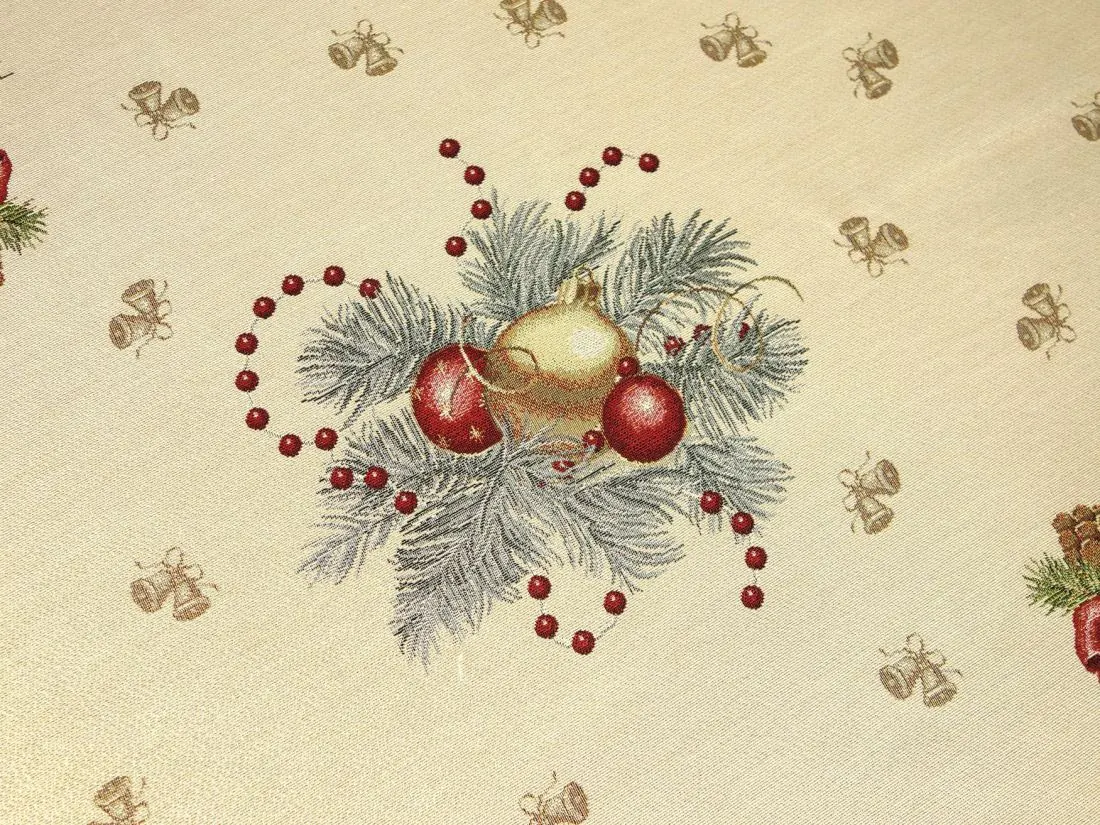 Obrus gobelinowy świąteczny śr. 140 cm dzwoneczki, bańki nr sw 219 SlodkieSny okrągły
