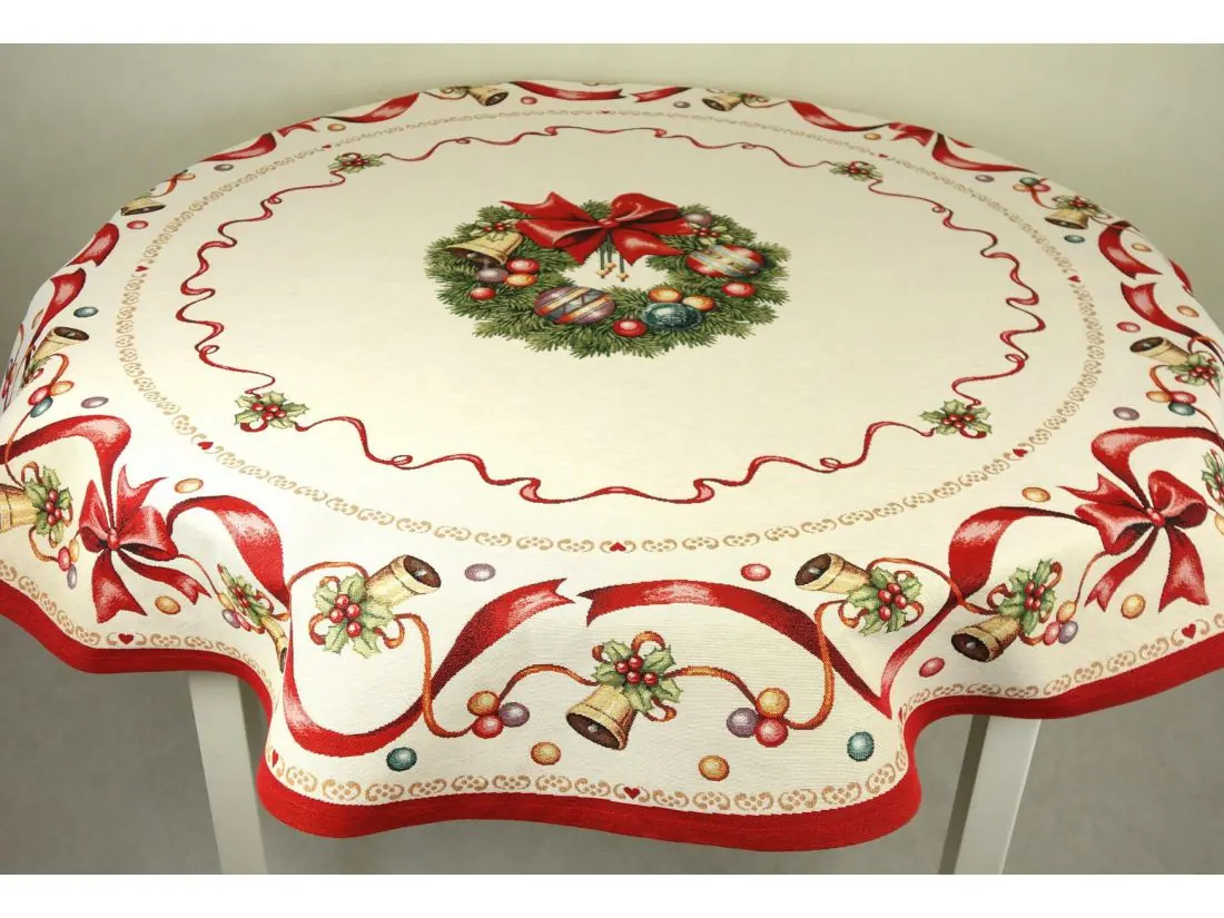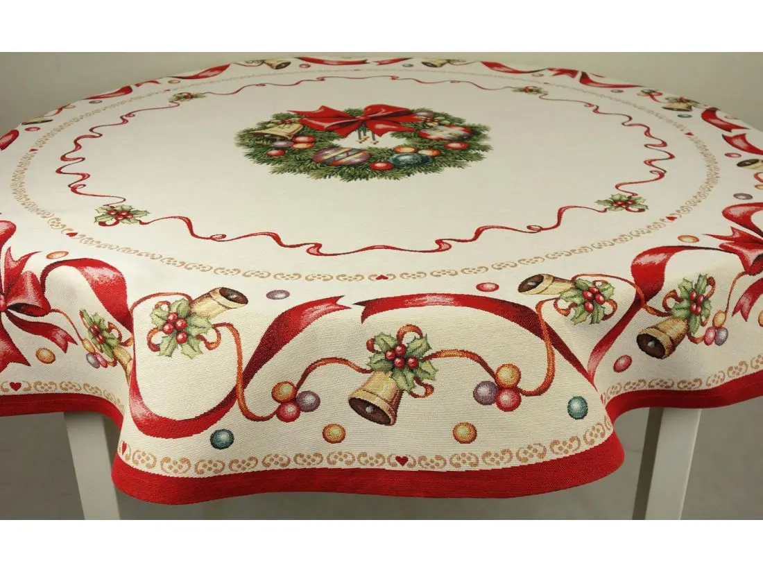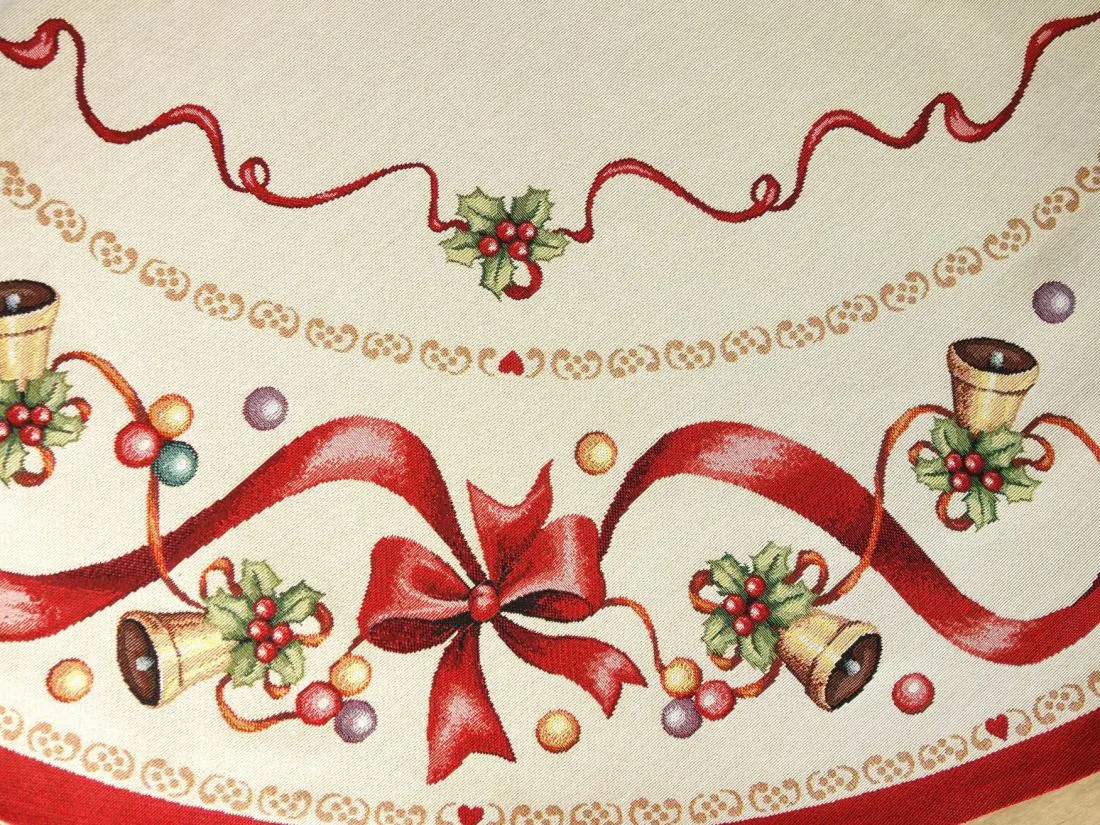 Obrus gobelinowy świąteczny śr. 140 cm stroik kokardka nr sw 202 SlodkieSny okrągły