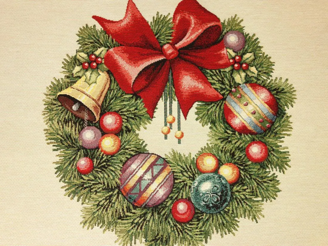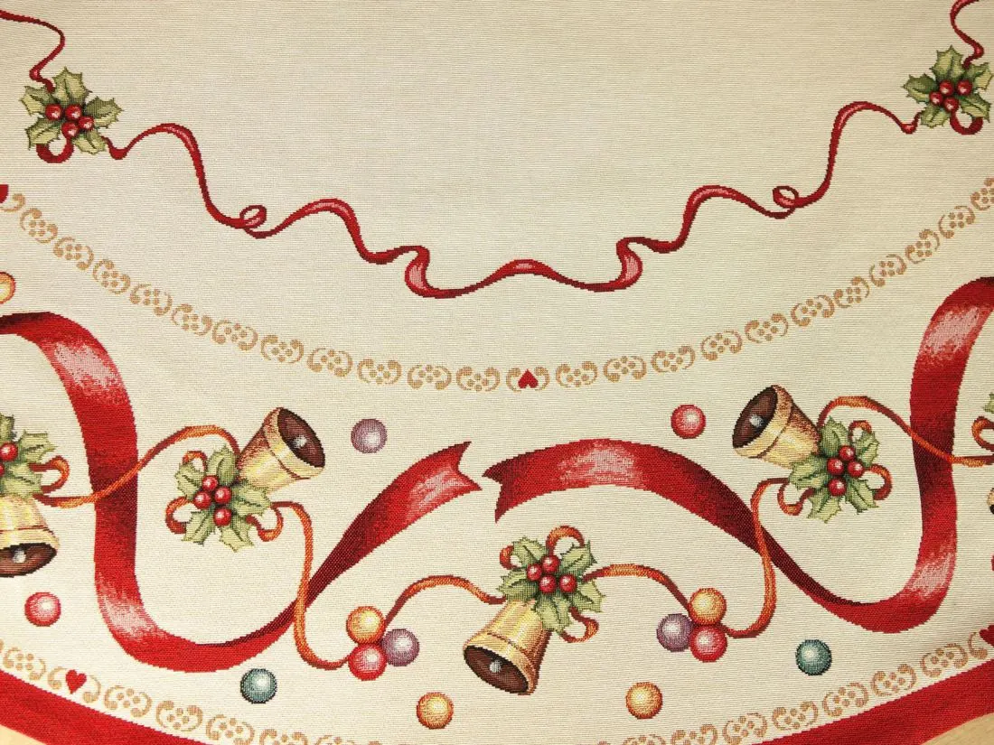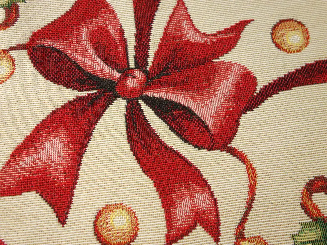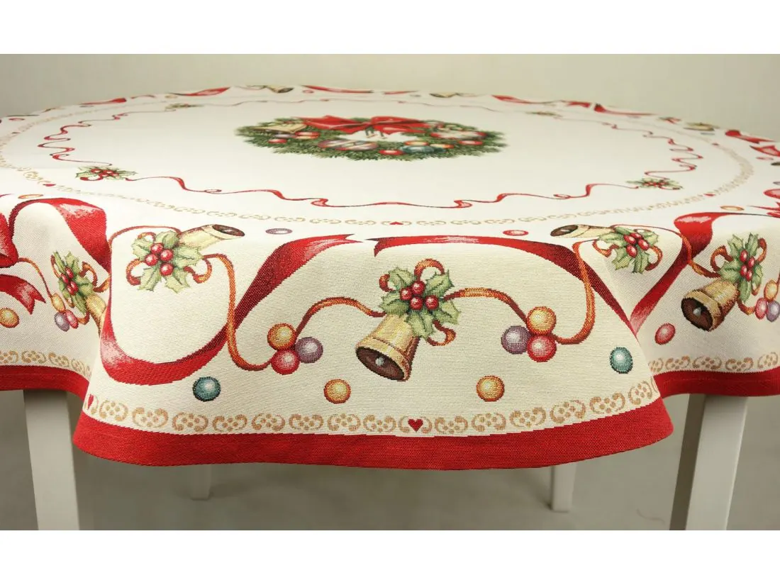 Obrus gobelinowy świąteczny śr. 140 cm stroik kokardka nr sw 202 SlodkieSny okrągły