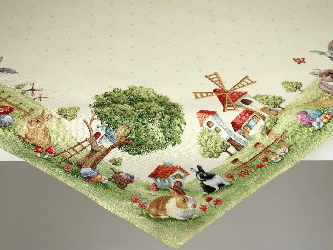 Obrus gobelinowy wielkanocny 100x100 cm zajączki, wiatrak wz 307 SlodkieSny