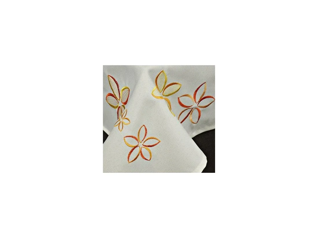 Elegancki Obrus Haftowany – Biały w Żółto-Pomarańczowe Kwiaty (130 × 180 cm)