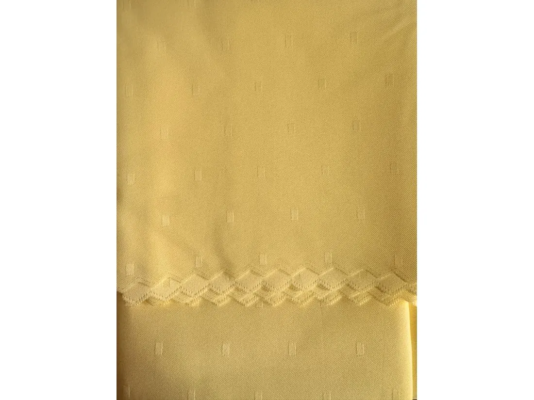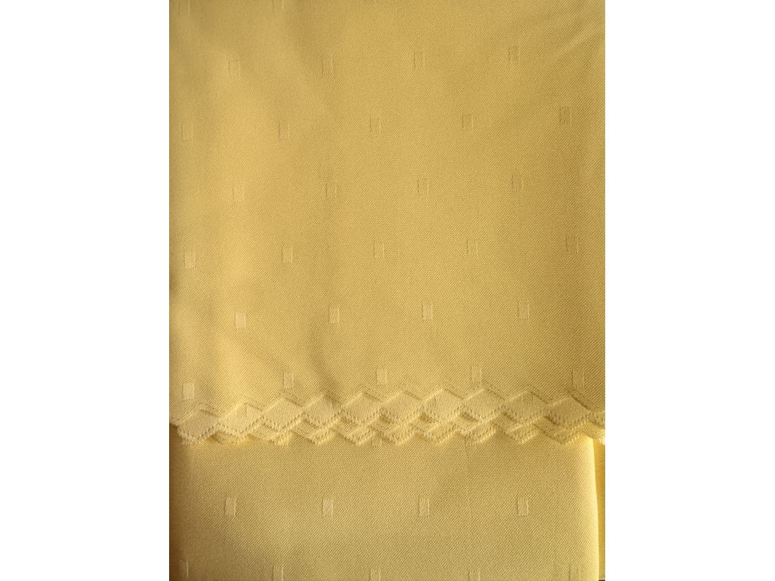 Obrus Plamoodporny w rozmiarze 100x150 cm w kolorze żółtym w kształcie prostokąta to propozycja dekoracji stołu dla osób ceniących sobie klasykę oraz przede wszystkim wygodę, został wykonany z polskiej tkaniny 100 % poliestrowej pokrytej apreturą plamoodporną / zwiększona odporność na zabrudzenia/, wykończenie obrusu w dekoracyjny ząbek. Obrus charakteryzuje się nowoczesnym desingiem, prostym wzornictwem oraz modnymi kolorami.