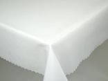 Codzienny obrus plamoodporny w kolorze białym o wymiarach 130x160 cm, owalny to praktyczna i estetyczna propozycja do każdego wnętrza. Wykonany z wysokiej jakości polskiej tkaniny 100% poliester, pokrytej warstwą plamoodporną, która skutecznie chroni przed zabrudzeniami i ułatwia codzienne użytkowanie. Jego delikatny odcień oraz prosty, klasyczny design sprawiają, że doskonale prezentuje się zarówno w kuchni, jadalni, jak i salonie. Obrus wykończony jest dekoracyjnym ząbkiem, co dodaje mu subtelnej elegancji, zachowując jednocześnie uniwersalny i nowoczesny charakter.