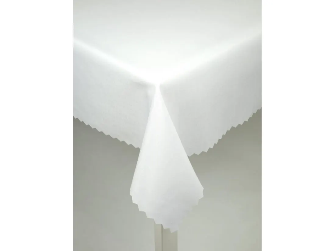 Codzienny obrus plamoodporny w kolorze białym o wymiarach 140x220 cm, to praktyczna i estetyczna propozycja do każdego wnętrza. Wykonany z wysokiej jakości polskiej tkaniny 100% poliester, pokrytej warstwą plamoodporną, która skutecznie chroni przed zabrudzeniami i ułatwia codzienne użytkowanie. Jego delikatny odcień oraz prosty, klasyczny design sprawiają, że doskonale prezentuje się zarówno w kuchni, jadalni, jak i salonie. Obrus wykończony jest dekoracyjnym ząbkiem, co dodaje mu subtelnej elegancji, zachowując jednocześnie uniwersalny i nowoczesny charakter.