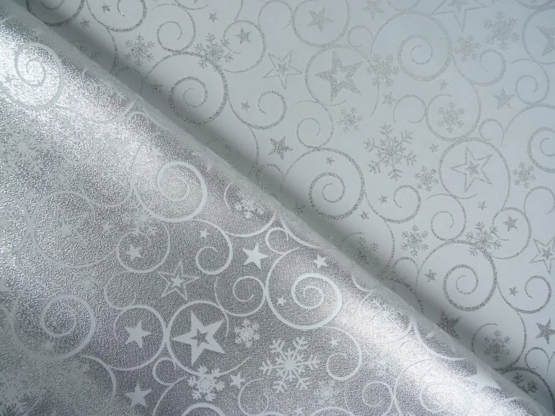 Obrus świąteczny 140x240 cm srebrny powój gwiazdka SlodkieSny plamoodporny dwustronny
