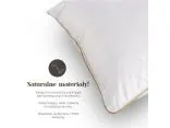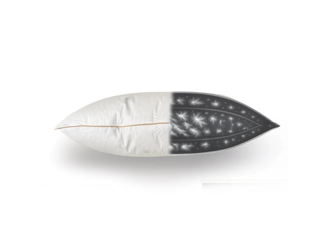 Poduszka posiada poszycie z 100% bawełny, które jest naturalne, oddychające i miękkie w dotyku, zapewniając prawidłową cyrkulację powietrza przez całą noc. Jej trzykomorowa konstrukcja to połączenie dwóch zewnętrznych komór wypełnionych w 90% puchem gęsim i 10% piórkami, które otulają głowę lekkością i puszystością, oraz wewnętrznej komory z 100% półpuchu, która nadaje sprężystości i stabilności, dzięki czemu poduszka nie zapada się i pozostaje elastyczna.