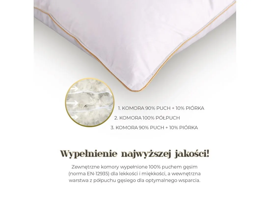 Poduszka Puchowa Exclusive Trzykomorowa 70x80 cm – Naturalny Puch Gęsi, Luksusowy Komfort Snu