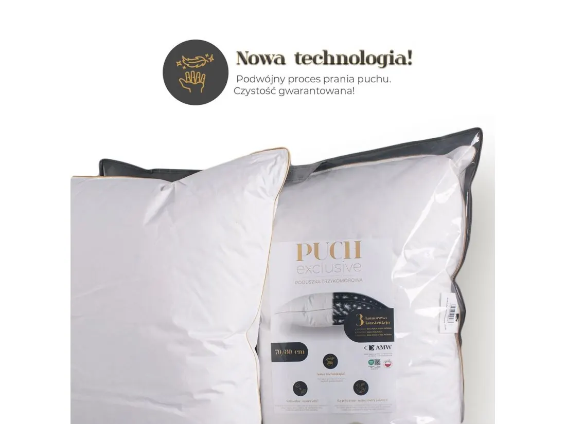 Poduszka trzykomorowa puchowa Exclusive o wymiarach 70x80 cm to idealne rozwiązanie dla osób ceniących sobie luksus, naturalność oraz komfortowy i zdrowy sen. Wykonana jest z najwyższej jakości materiałów, które gwarantują wyjątkową miękkość, lekkość i odpowiednie wsparcie głowy oraz szyi.