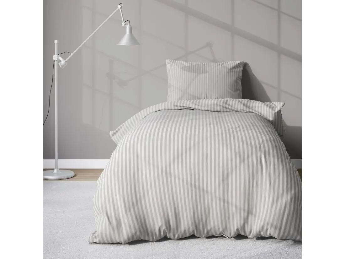 Pościel 140x200 +70x80 adamaszek pure light grey pasek 1 cm jasny popiel