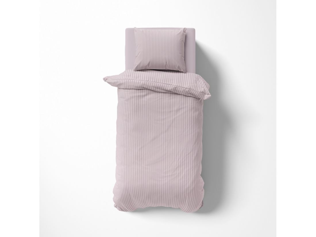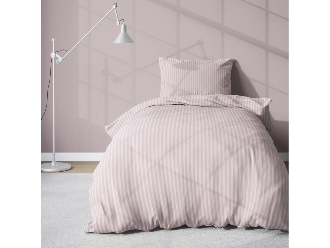 Pościel 140x200 +70x80 adamaszek pure róż pudrowy pasek 1 cm rożowa