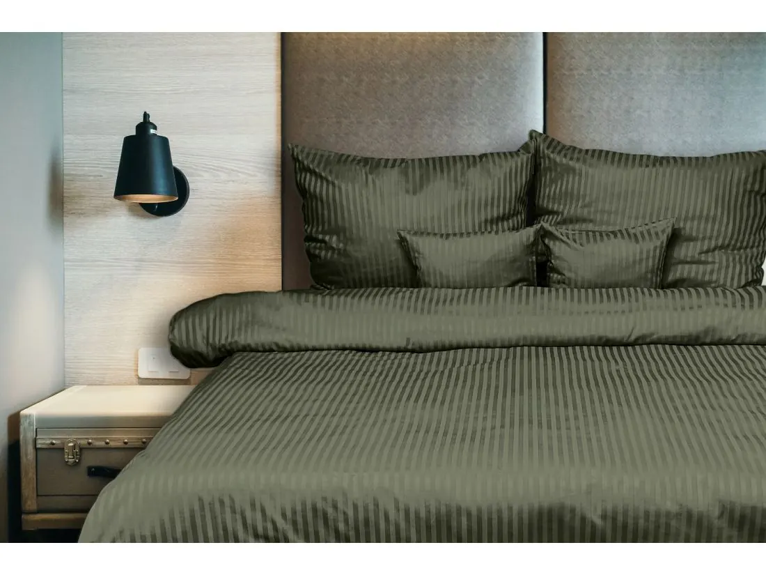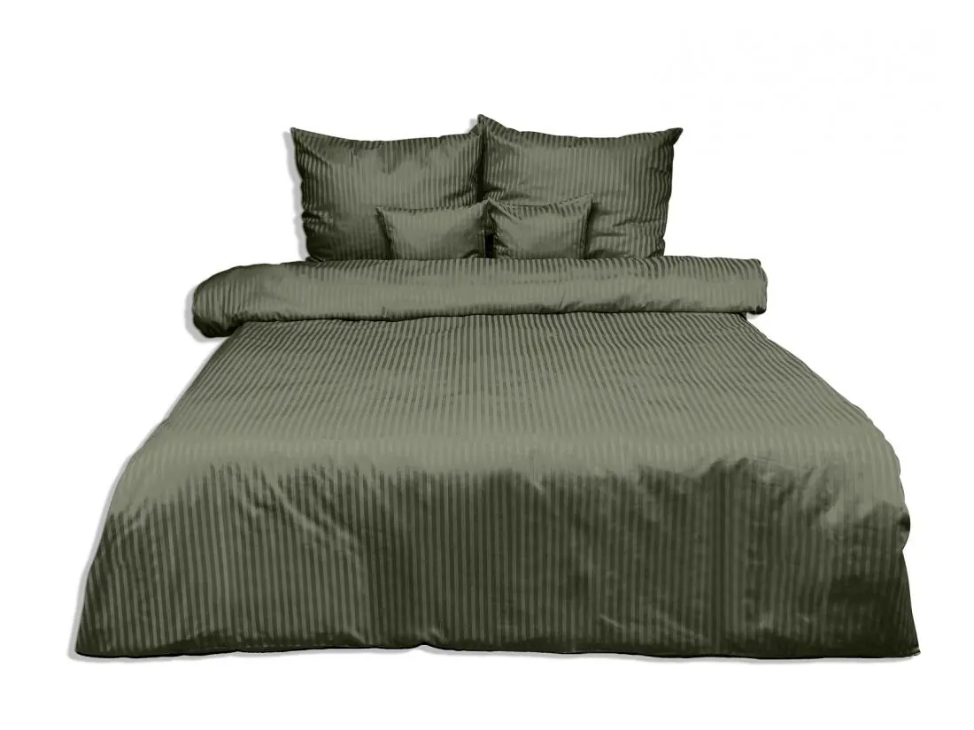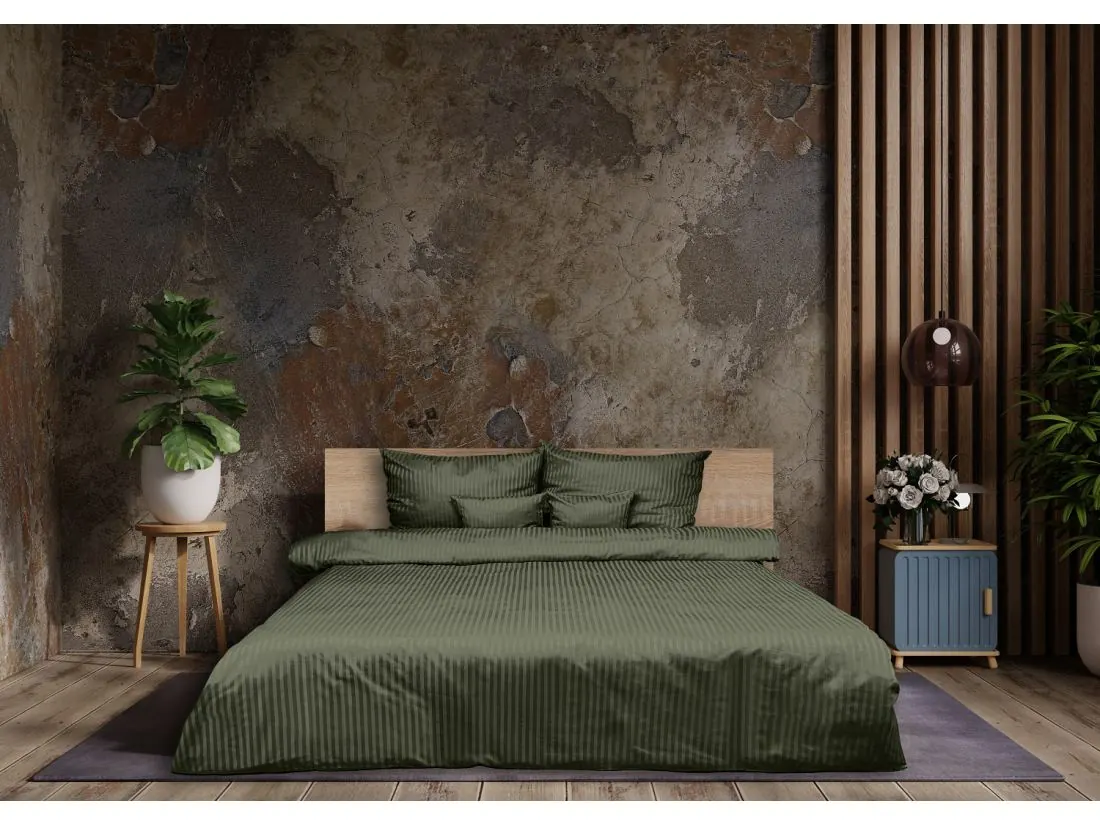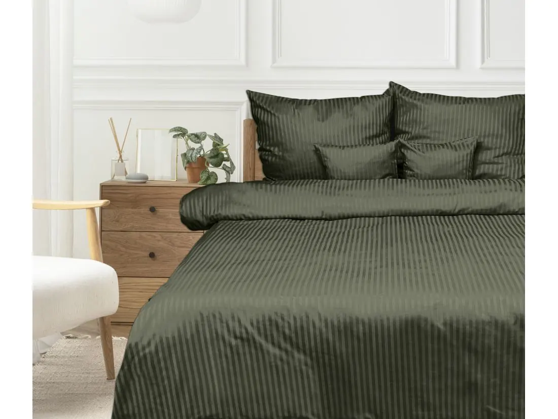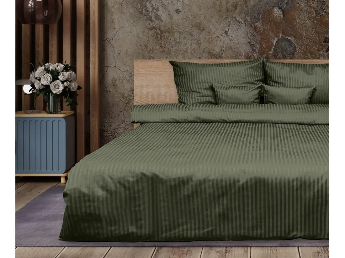 Pościel 160x200 +2/70x80 adamaszkowa ciemnozielona pasek 1 cm matex