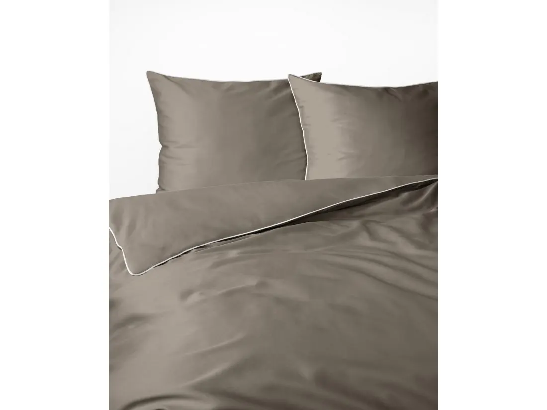 Pościel makosatyna bawełniana 180x200 taupe – komplet pościeli satynowej premium z elegancką lamówką