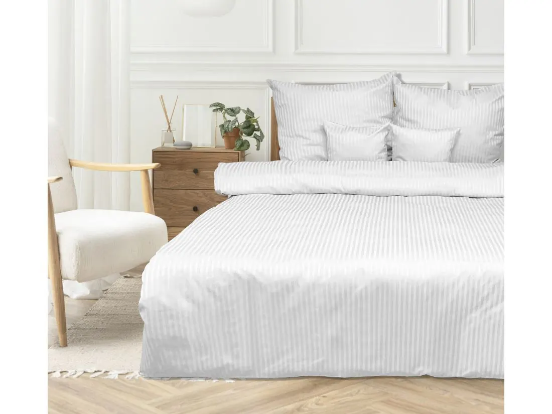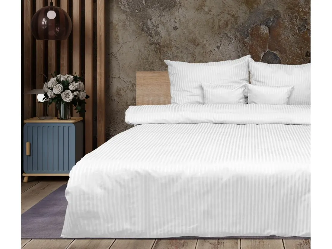 Pościel 220x200 +2/70x80 adamaszkowa biały pasek 1 cm matex