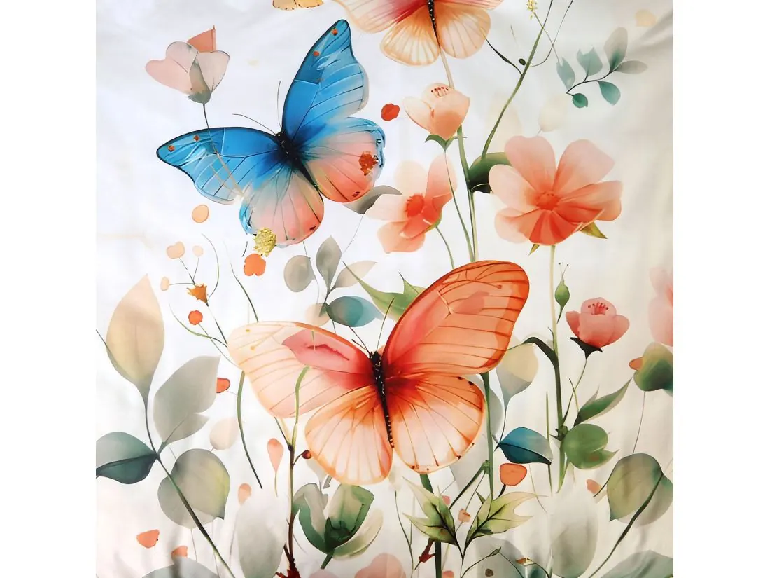 Pościel 220x200 akwarelowe motyle kwiaty satyna – boho romantyczna
