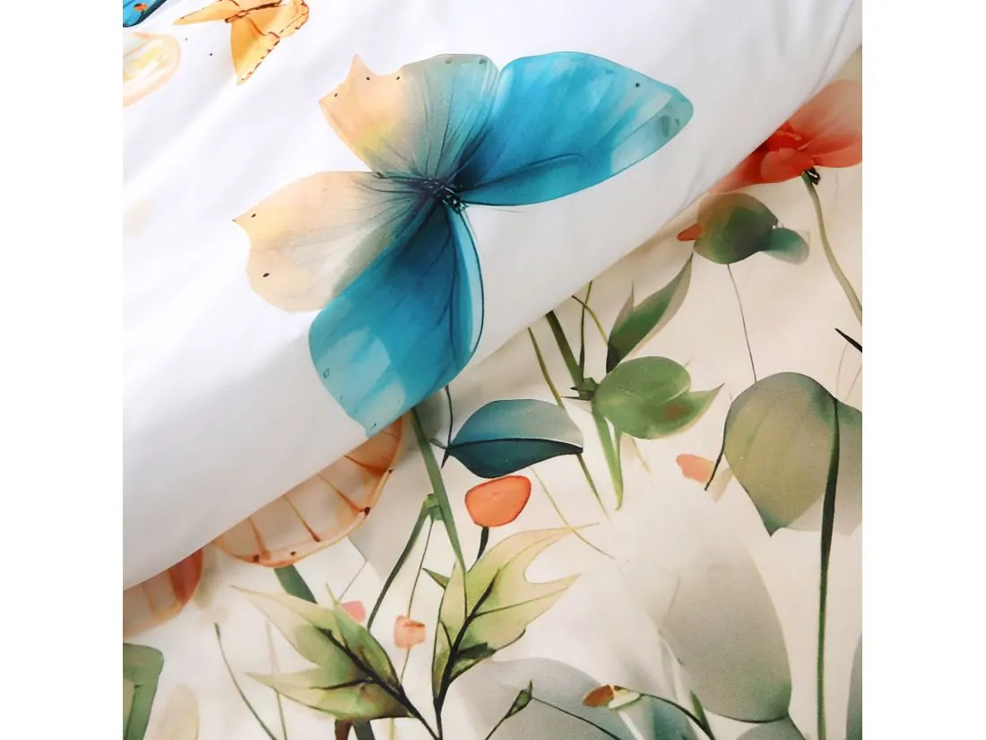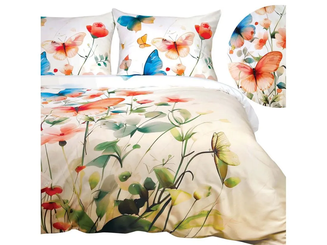 Pościel z satyny bawełnianej 220x200 Motyle i Polne Kwiaty – Druk Cyfrowy 3D