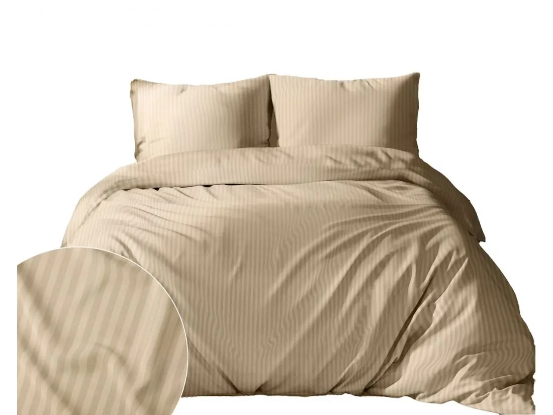 Pościel Adamaszek 180x200 Pure Piaskowy Beż Pasek 1 cm beżowy