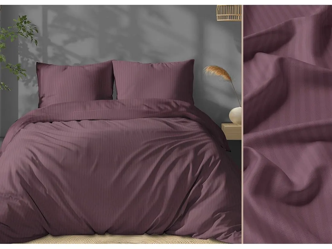 Tkanina adamaszkowa wyróżnia się eleganckim wzorem w postaci delikatnych pasków o szerokości 1 cm. Specjalny splot żakardowy tworzy subtelną strukturę, która pięknie odbija światło, nadając pościeli luksusowego, hotelowego połysku. Kolor róż antyczny (dusty rose) wprowadza do wnętrza spokój i ponadczasowy styl.
