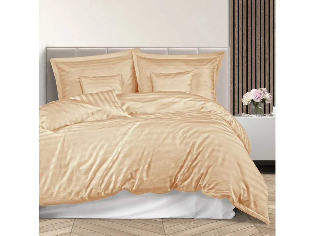 Pościel bambusowa Stripe beige 160x200 + 2/70x80 + 4/40x40 satyna bawełniana Bamboo beżowe paski beż 7 el.