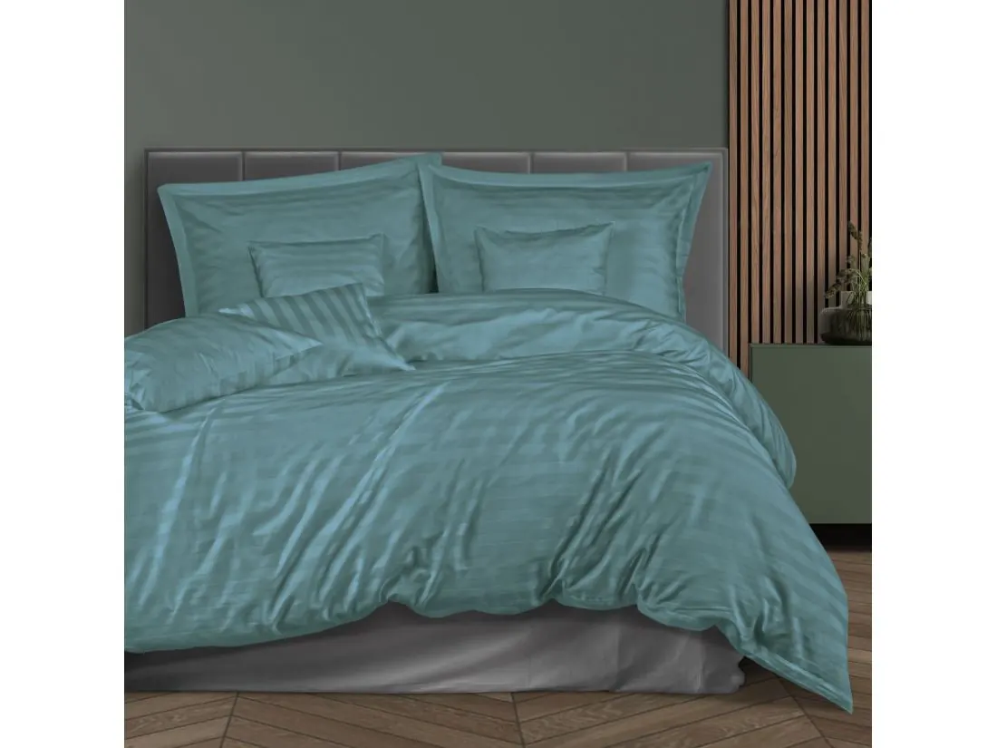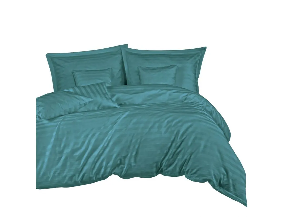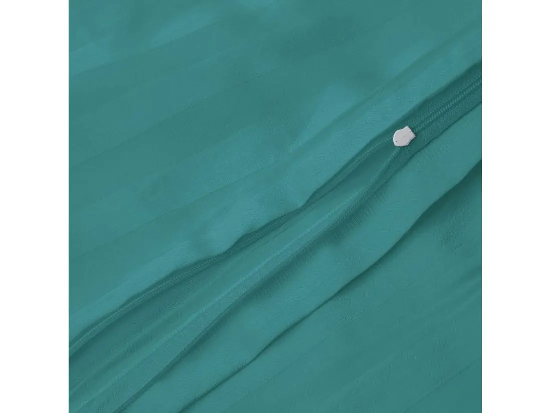 Ekskluzywna pościel Bamboo Stripe turkus została wykonana z 50% wiskozowego włókna bambusowego i 50% bawełny, jest nie tylko miękka i wygodna, ale także naturalna i przyjazna dla środowiska. Delikatny wzór w pasy o szerokości 2 cm nadaje pościeli wyjątkowej elegancji, zawiera poszwę, 2 poszewki w rozmiarze 70x80 cm z ozdobną 4 cm plisą oraz 4 poszewki w rozmiarze 40x40 cm, dodatkowo zamek błyskawiczny zakryty jest plisą.
