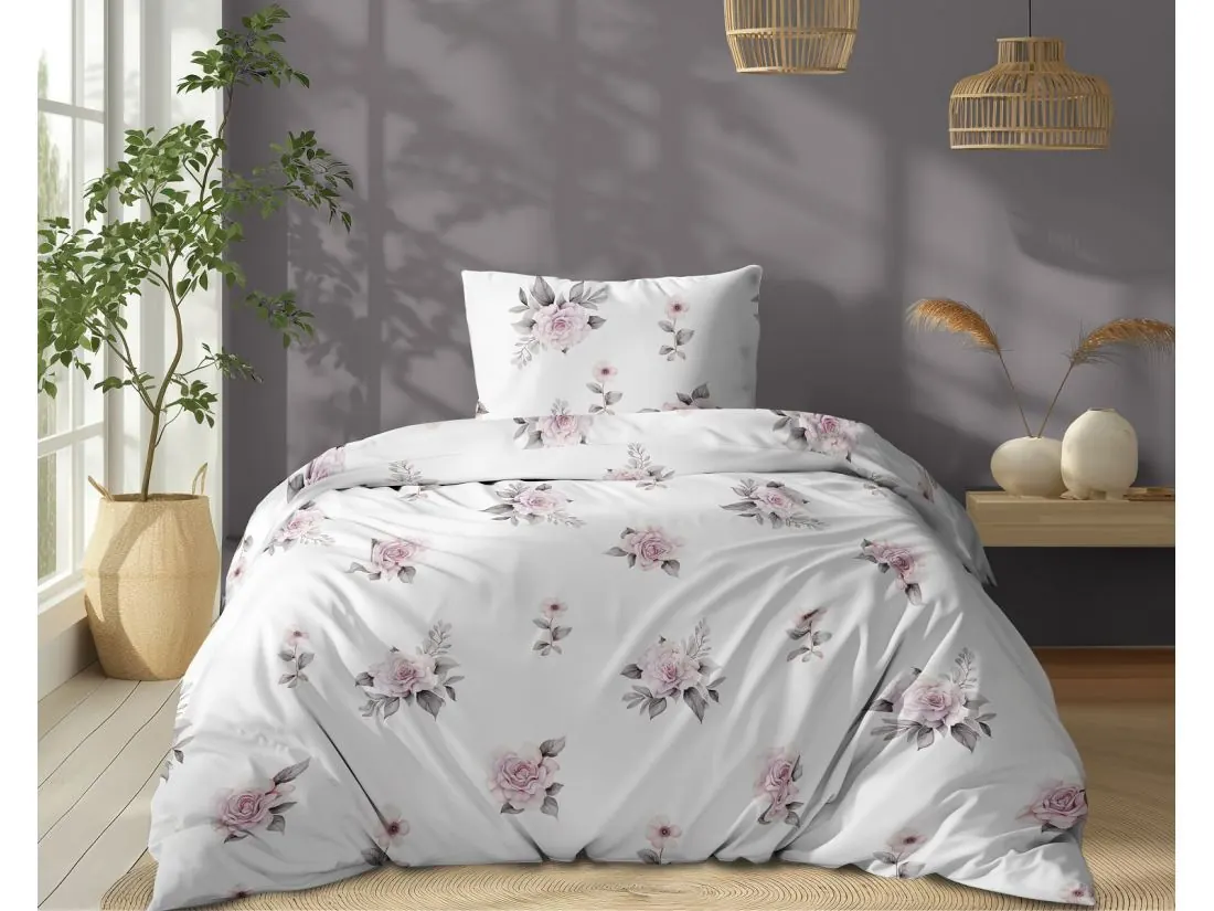 Pościel bawełniana 140x200 +1/70x80 różowe róże wz. 5342 b