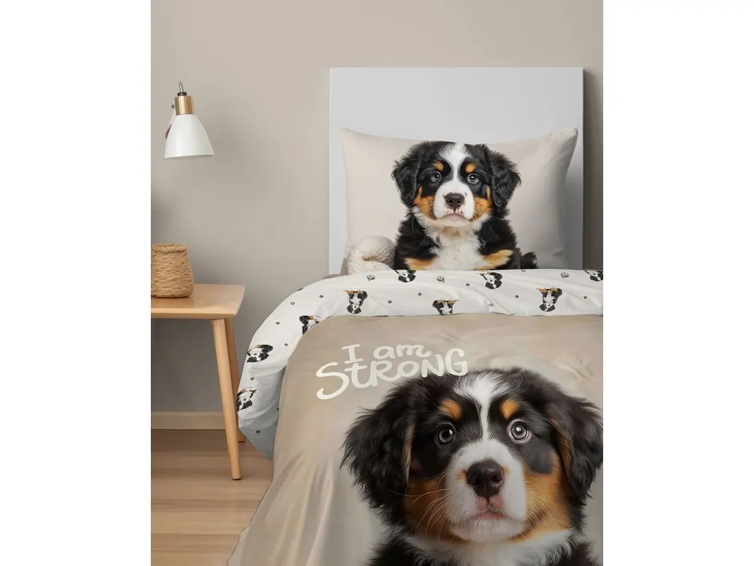 Pościel bawełniana 140x200 - 3D z berneńskim psem pasterskim – dla dzieci i miłośników zwierząt