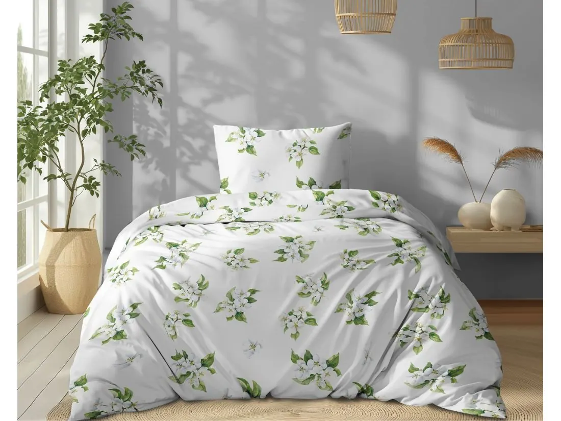 Pościel bawełniana 140x200 z poszewką 70x80 to połączenie naturalnego materiału, wygody i eleganckiego stylu. Wzór w białe kwiaty wiśni na jasnym tle wprowadza do sypialni subtelność oraz romantyczny akcent, a zarazem dopełnia stylowo każde wnętrze – od klasycznego po nowoczesne.