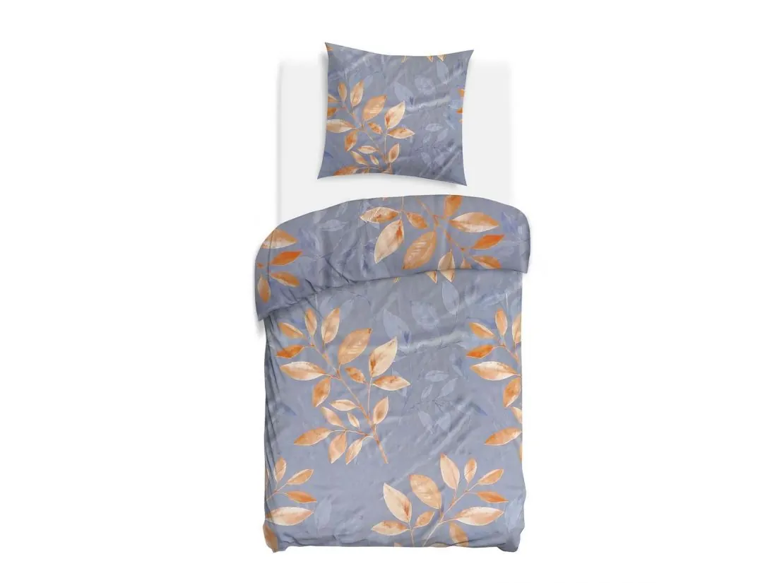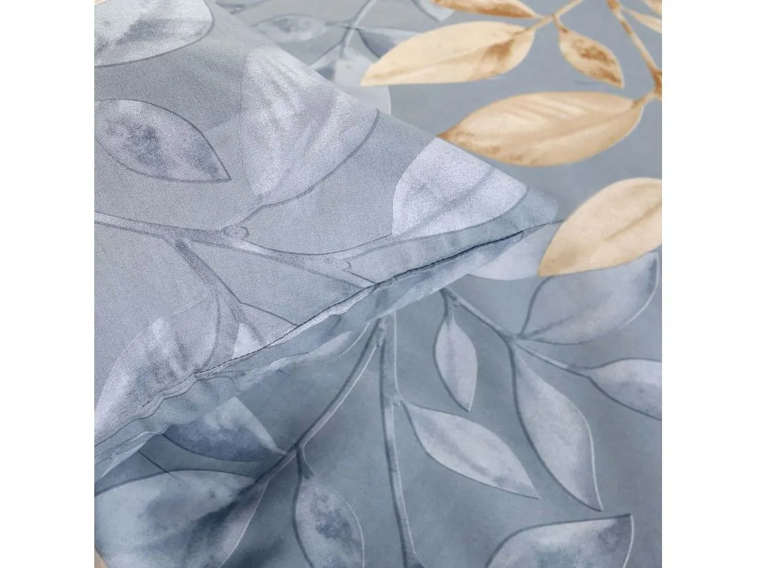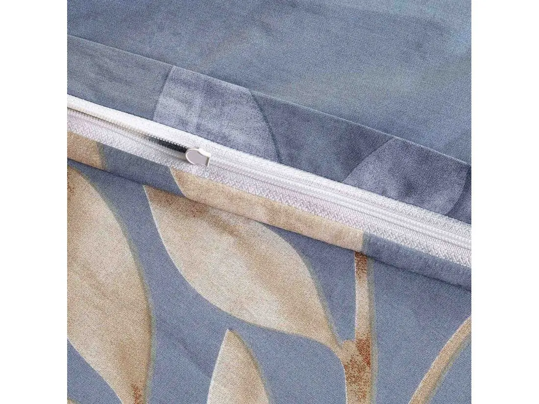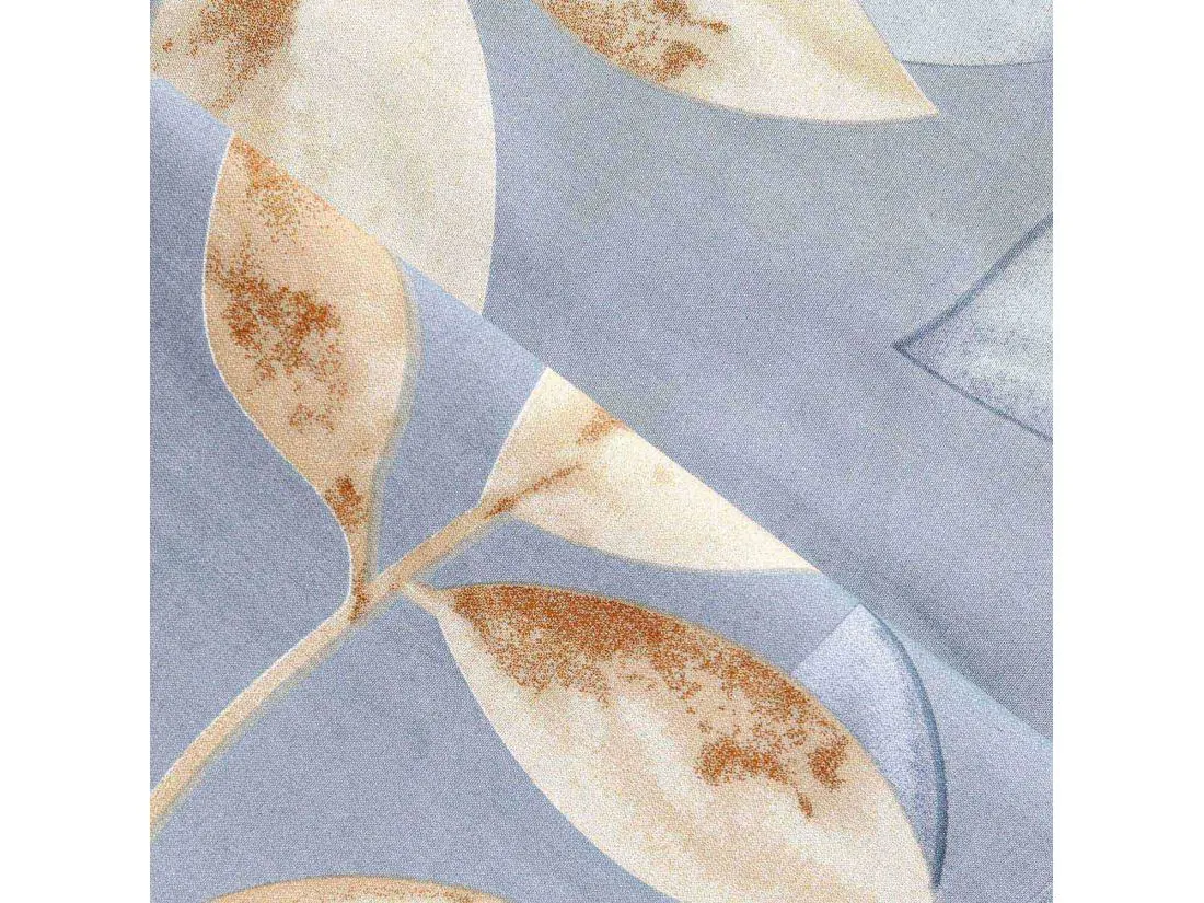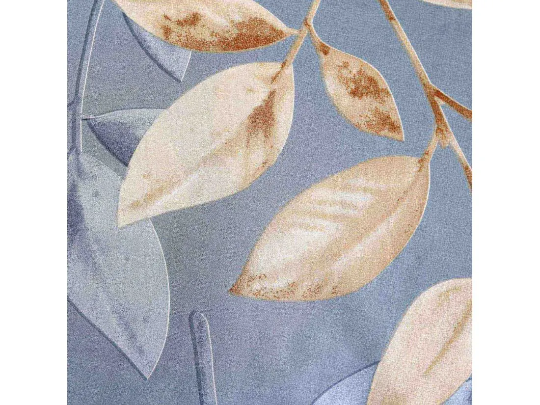 Kompozycja tworzy efekt lekkiego, unoszącego się na wietrze motywu roślinnego, dodając wnętrzu głębi bez jego przytłaczania. Widoczne żyłki i lekkie cieniowanie nadają całości malarski charakter. Przemyślany układ sprawia, że poszewki na poduszki zdobią centralnie rozmieszczone liście, natomiast na kołdrze wzór jest dynamicznie rozproszony. Wyobraź sobie codzienne budzenie się w tak relaksującej, błękitnej oprawie.