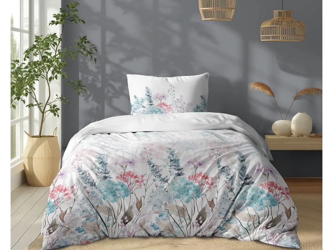 Pościel bawełniana 140x200 – Eteryczny Ogród, Lawenda i Hortensje (100% Bawełna)