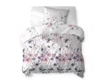 Pościel bawełniana 140x200 – Łąka pełna różowych i fioletowych kwiatów na jasnym białym tle
