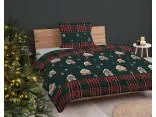 Brzegi pościeli ozdabia szeroki pas w klasyczną czerwoną kratę, która przełamuje motyw piernikowy, podkreślając elegancję i tradycyjny charakter wzoru. Połączenie ciemnej zieleni z wyrazistą kratą oraz świątecznymi grafikami tworzy ciepłą i bajkową atmosferę w każdej sypialni, dodając jej wyjątkowego uroku na czas zimowych wieczorów.