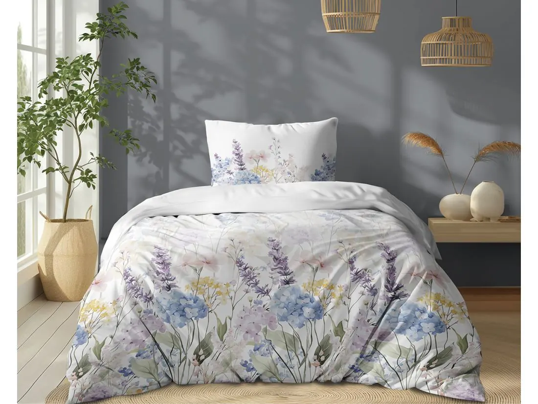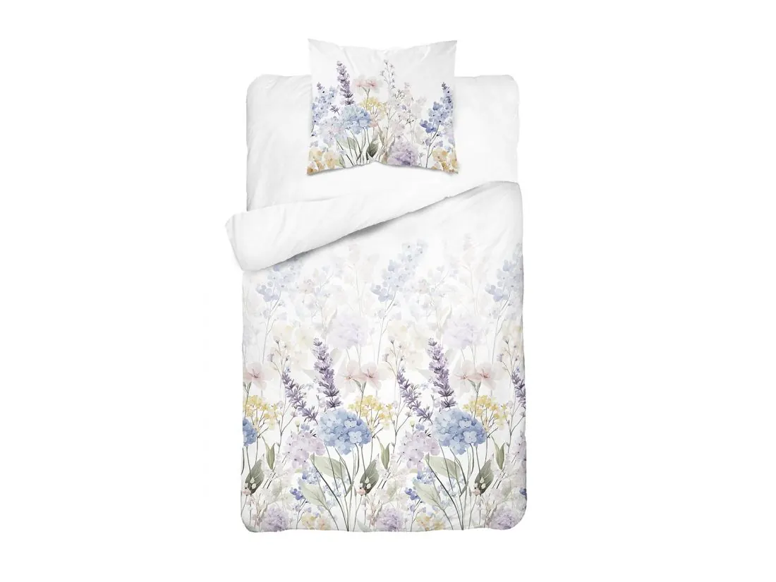 Pościel bawełniana 140x200 – Malowniczy Ogród, Lawenda i Hortensje (100% Bawełna)