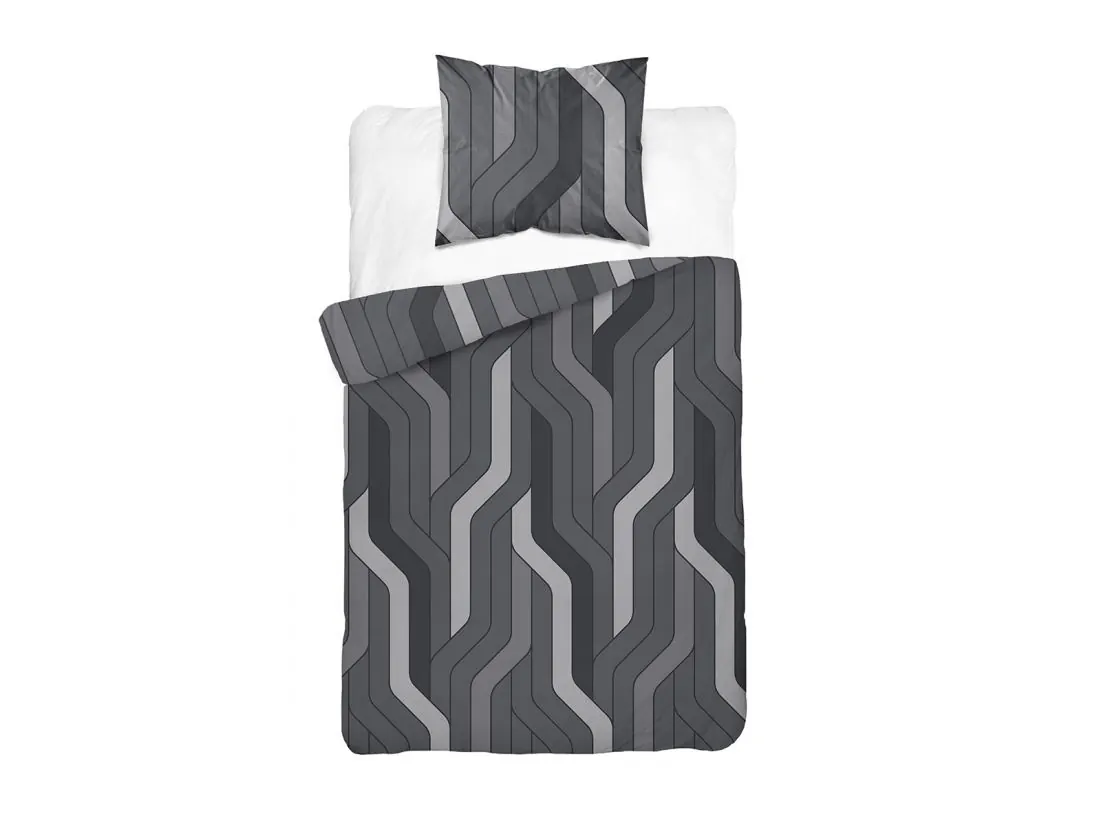 Pościel bawełniana 140x200 – Geometryczny Zygzak Szary (100% Bawełna)