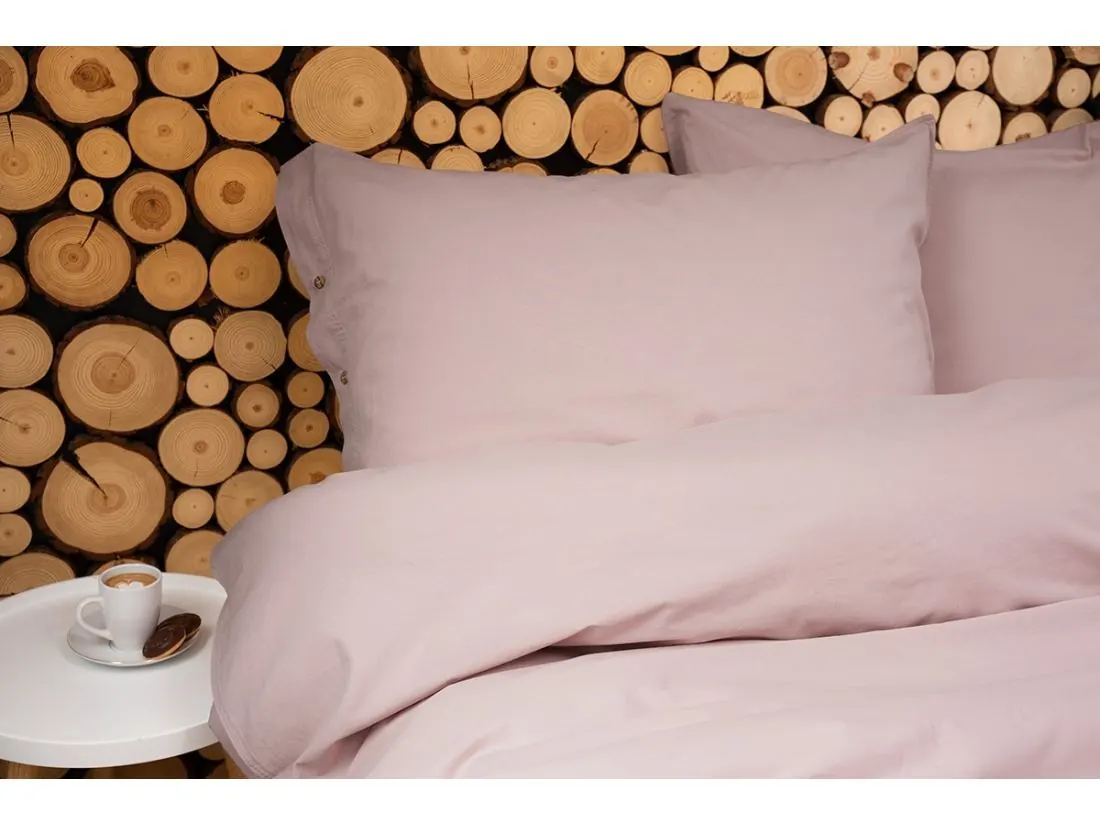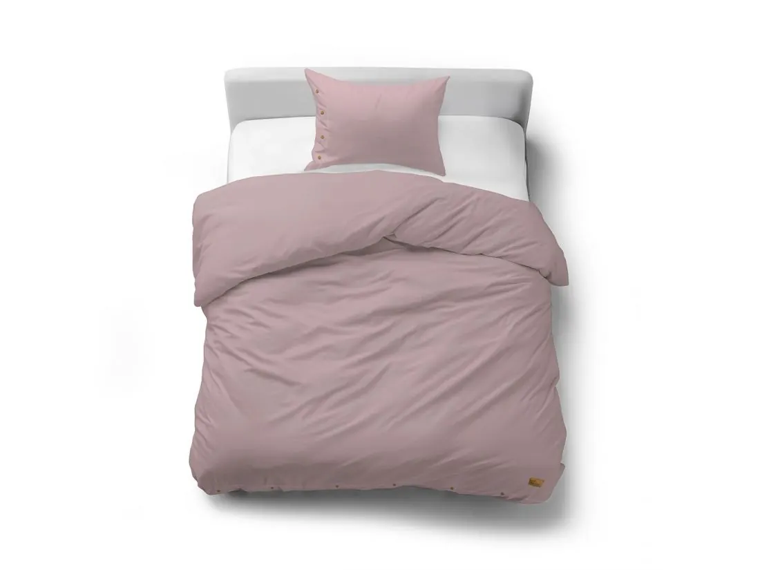 Pościel Bawełniana 140x200 z Ozdobnymi Guzikami Bez Prasowania Różowa