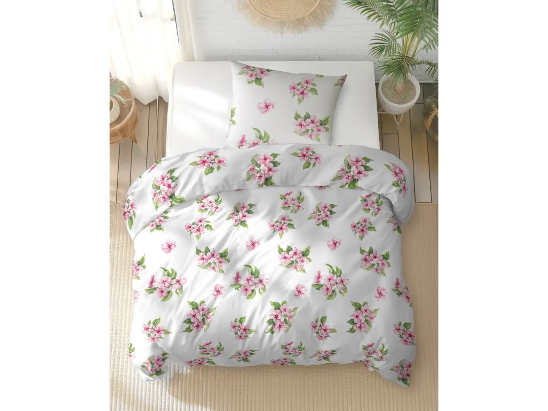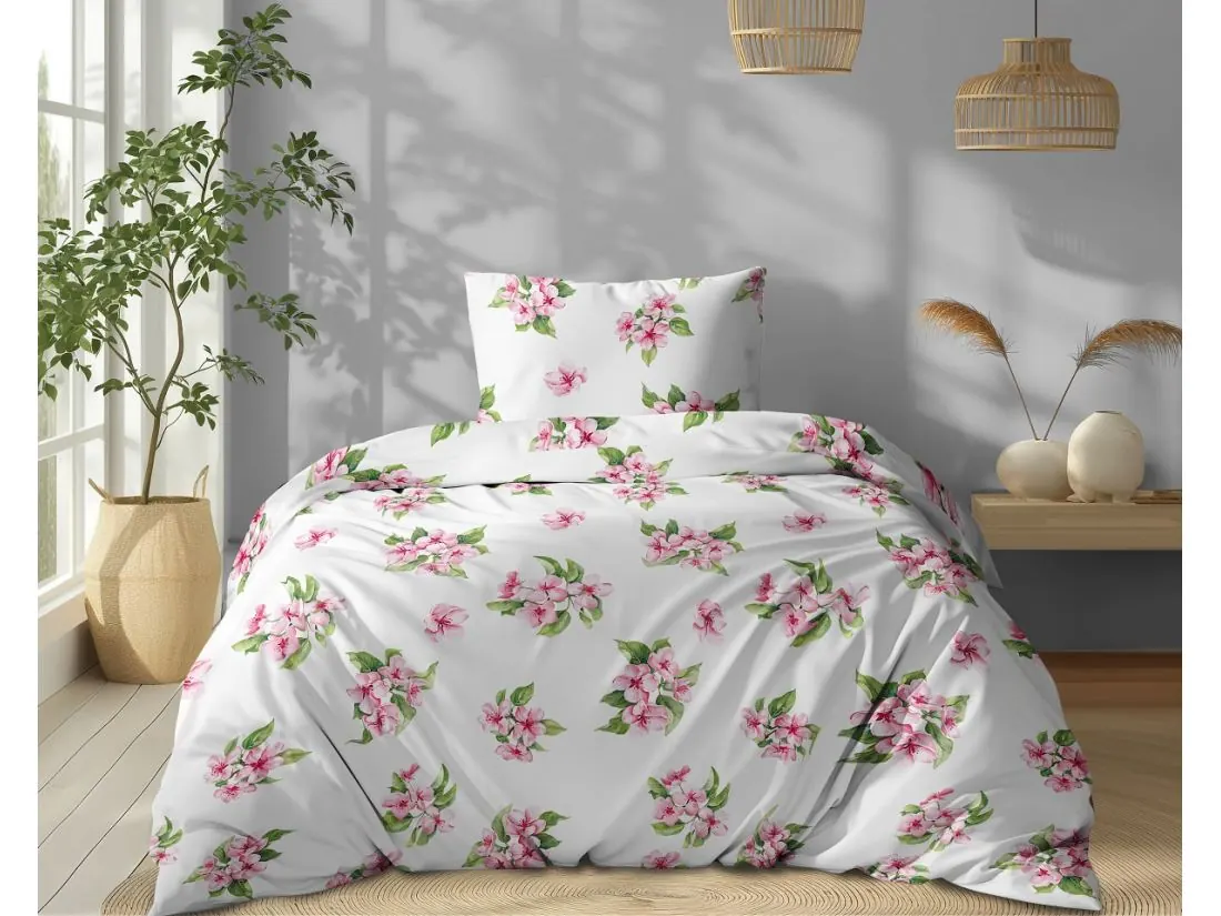 Pościel bawełniana 140x200 z poszewką 70x80 – różowe kwiaty wiśni