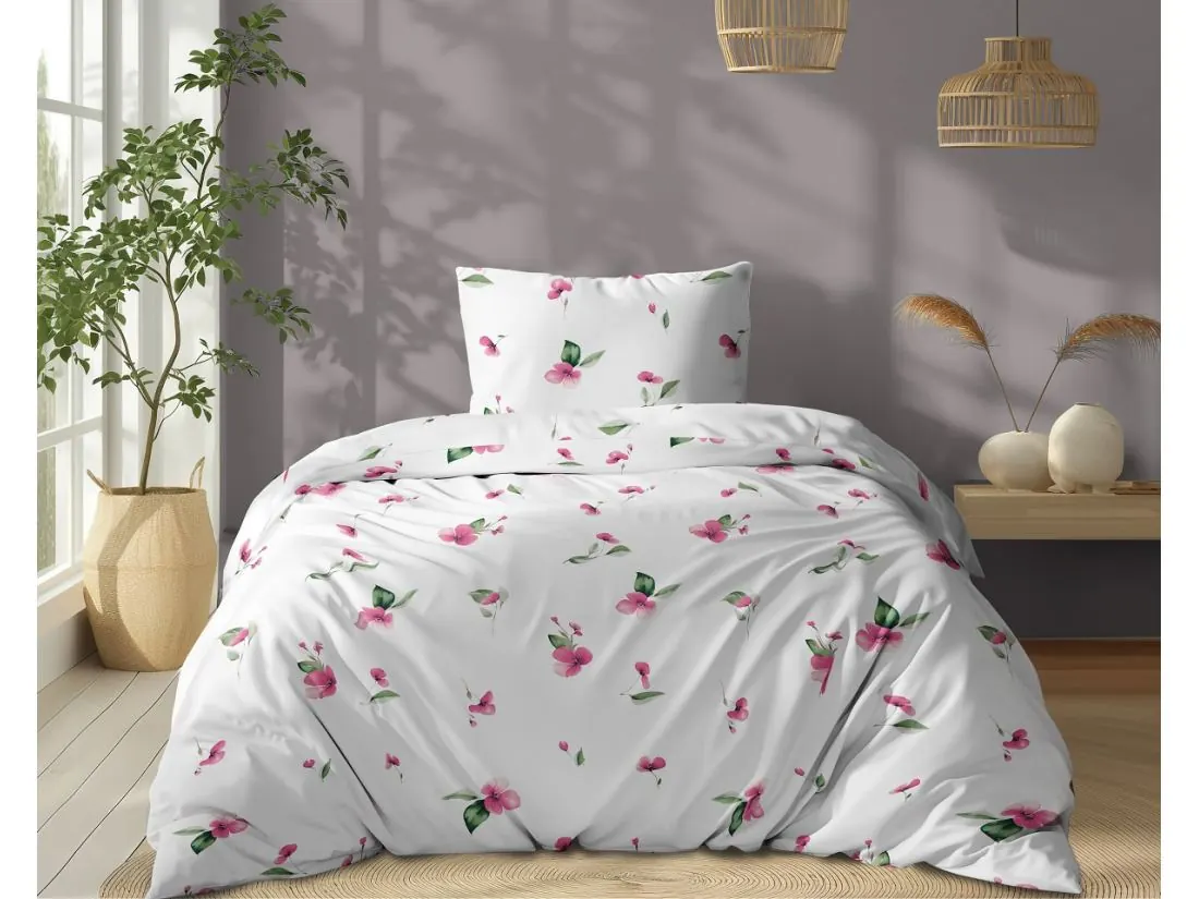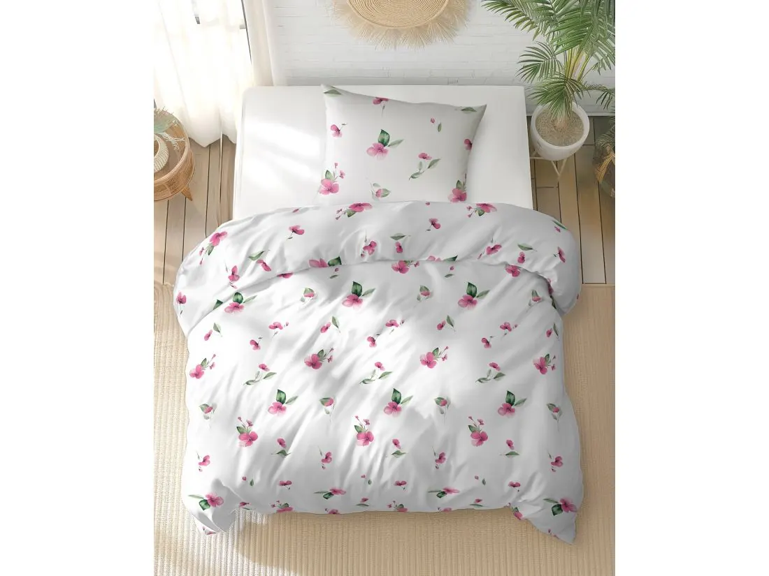Pościel bawełniana 140x200 z wzorem różowych kwiatków na białym tle – stylowa i komfortowa
