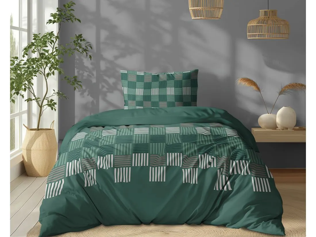 Pościel bawełniana 140x200 zielona szachownica – 100% bawełna