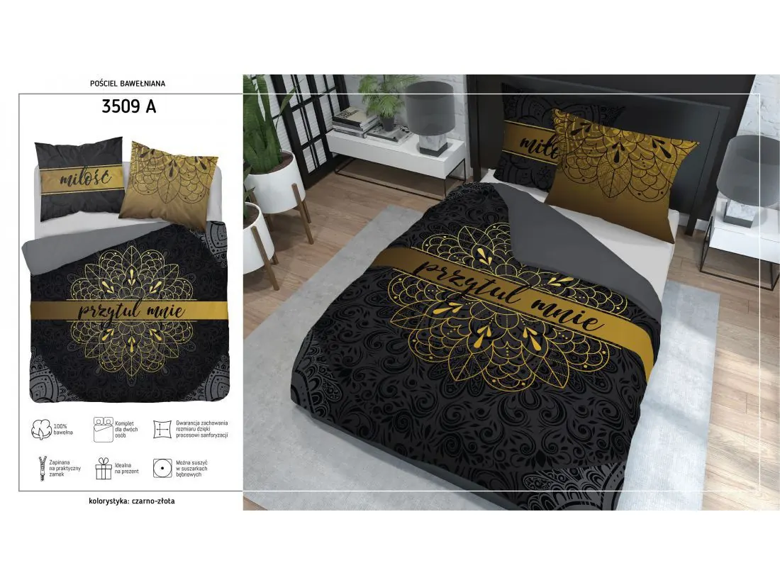 Komplet pościel z bawełny w rozmiarze 160x200 cm z kolekcji Holland firmy Detexpol nr wzoru 3509 a , to nowa odsłona bielizny pościelowej. Fantazyjny wzór w grafitowo czarnej kolorystyce sprawi, że każda noc będzie wyjątkowa tylko z radosnymi kolorowymi snami. To propozycja dla każdego miłośnika stylu minimalistycznego, idealna dla każdego kto lubi romantyczne wzory na pościeli.