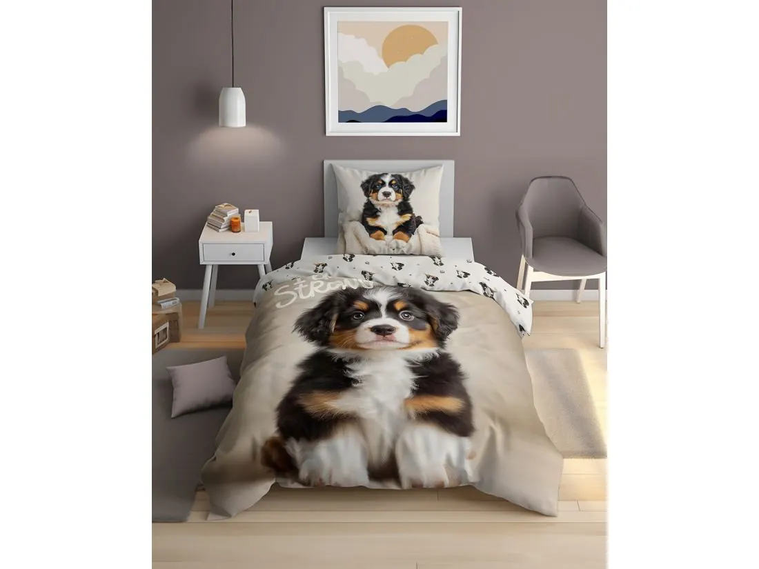 Pościel bawełniana 160x200 - 3D z berneńskim psem pasterskim – dla dzieci i miłośników zwierząt