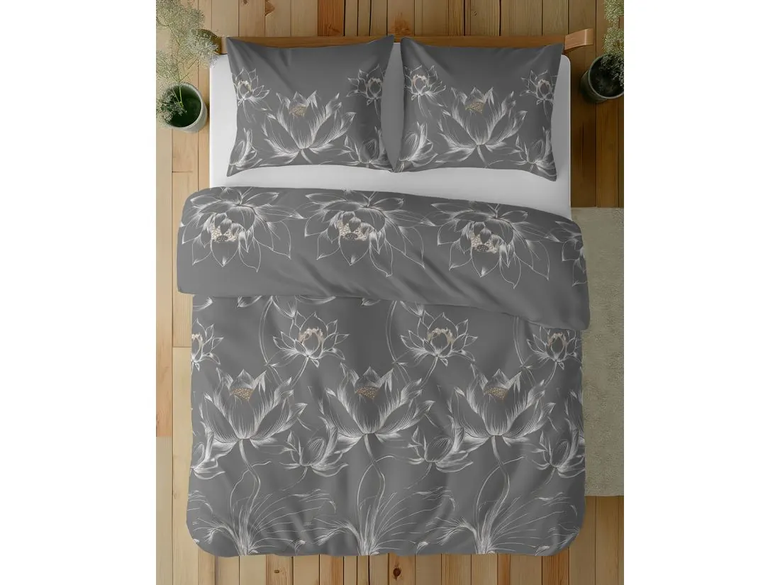 Design: Pościel grafitowa w kwiaty lotosu