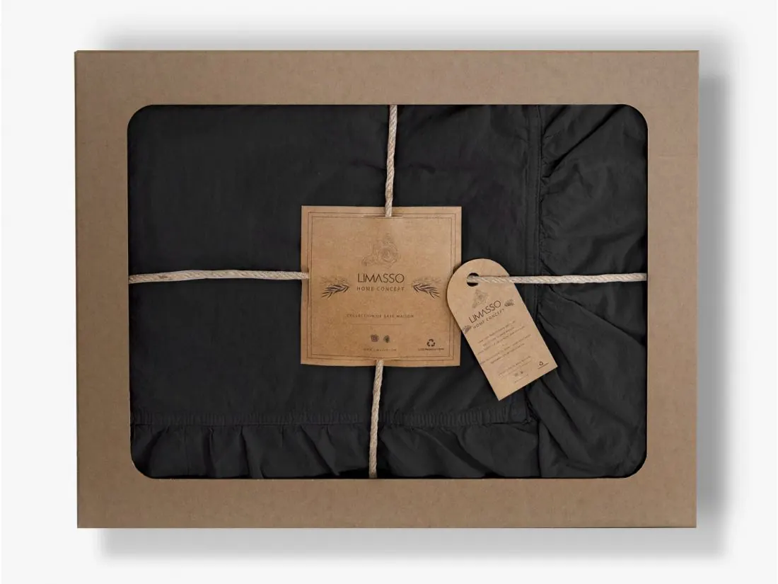 Pościel bawełniana 160x200 z falbanką black Limasso w pudełku bez prasowania czarny
