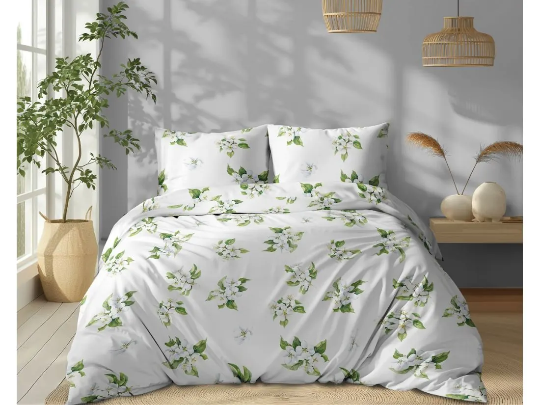 Pościel bawełniana 180x200 z dwoma poszewkami 70x80 to nie tylko komfortowy komplet, ale także stylowa ozdoba sypialni. Wzór w białe kwiaty wiśni na jasnym tle inspirowany jest pięknem japońskich ogrodów, wprowadzając do wnętrza harmonię i delikatność. Subtelne kwiaty o lekkiej, artystycznej formie nadają pościeli romantycznego i ponadczasowego charakteru, doskonale komponując się z jasnymi pastelowymi kolorami oraz klasycznymi aranżacjami.