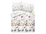 Pościel bawełniana 180x200 – Łąka w kwiaty żółte i różowe na jasnym białym tle