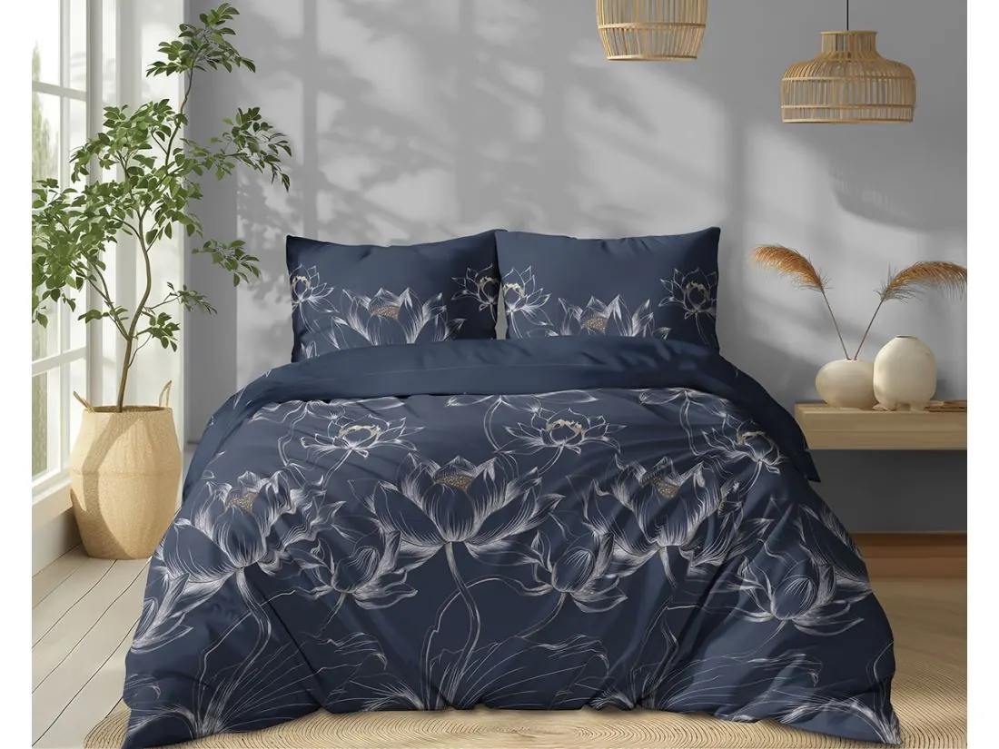 Pościel bawełniana 180x200 – szlachetny lotos w granacie i złocie