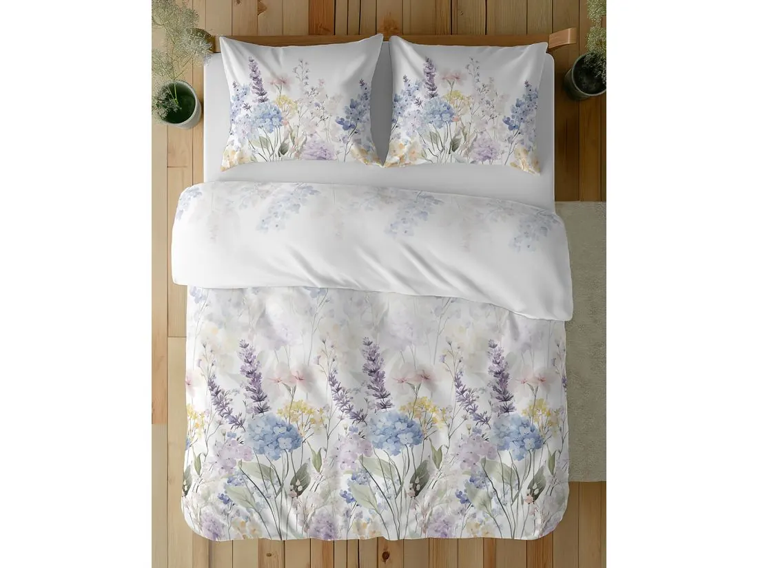 Pościel bawełniana 220x200 – Malowniczy Ogród, Lawenda i Hortensje (100% Bawełna)