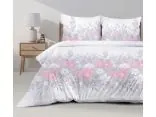 New Joy z kwiatowym wzorem w odcieniach różu i szarości to idealna opcja dla osób szukających subtelnej elegancji. Duże, delikatne kwiaty otoczone liśćmi tworzą romantyczny i nowoczesny efekt, który wprowadza do sypialni ciepłą, spokojną atmosferę a jednocześnie wspaniale rozjaśni przestrzeń dzięki subtelnym kontrastom bieli i szarości. Miękka tkanina i staranne wykonanie zapewnią komfortowy sen każdej nocy, a delikatny nadruk kwiatów na pewno przyciągnie uwagę i stanie się ozdobą Twojej sypialni.