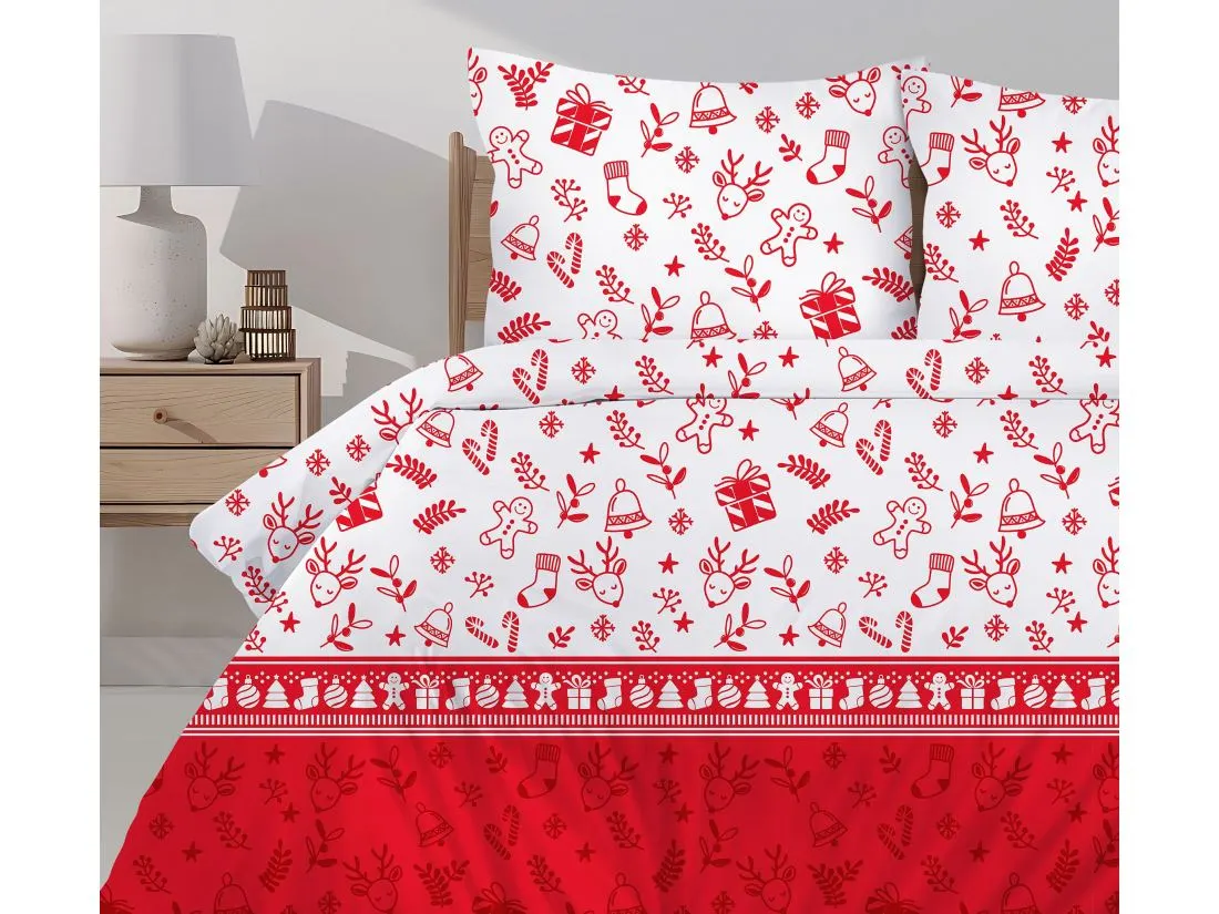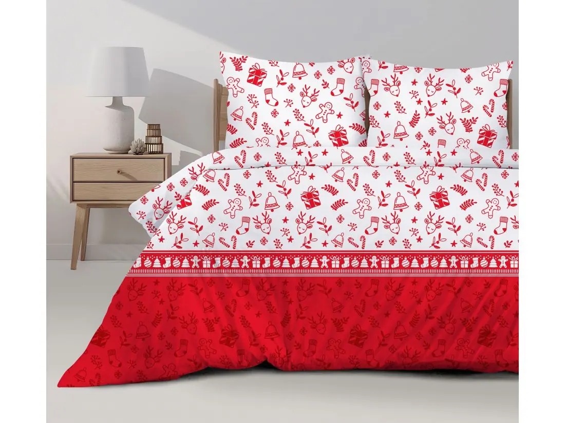 Pościel bawełniana Bielbaw 220x200 świąteczna niespodzianka – biało czerwona
