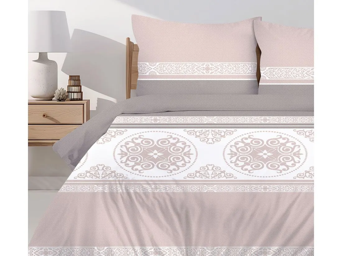 Pościel bawełniana Bielbaw 220x200 Versus Beige – beżowo biały finezyjny ornament