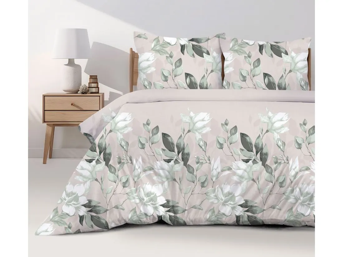 Pościel Zoi to wyjątkowe połączenie naturalnego koloru lnianego z dużymi, zielonymi kwiatami, które wprowadzają do wnętrza harmonię i spokój. Taka kolorystyka kojarzy się z naturą, ekologią i zdrowym stylem życia, dlatego doskonale sprawdzi się w sypialni osób ceniących przytulne, stylowe i wyciszające aranżacje. Wzór Zoi to świetna propozycja do nowoczesnych i klasycznych wnętrz, gdzie liczy się oryginalność i subtelna elegancja. Dzięki niemu stworzysz przestrzeń idealną do relaksu i regeneracji. Pościel jest wykonana z miękkiego materiału, który zapewnia komfortowy sen i łatwo się pierze. Idealna propozycja dla osób, które cenią prostotę, elegancję i funkcjonalność.